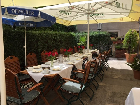 Nasza restauracja jest prowadzona przez rodzinę i charakteryzuje się saksońską gościnnością, domowymi potrawami i winami z Królewskiej Winnicy Pillnitz i innych saksońskich winiarzy. Oferujemy również lokalne piwa i napoje bezalkoholowe.Nasz ogród dla gości jest romantycznie położony za naszym domem i jest ozdobiony palmami i mnóstwem kwiatów.